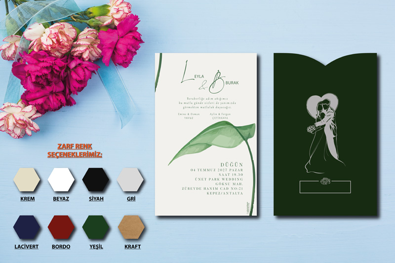 - Zarf: 160gr Renkli Kraft ya da 170gr. 1. Hamur Renkli Kağıt.